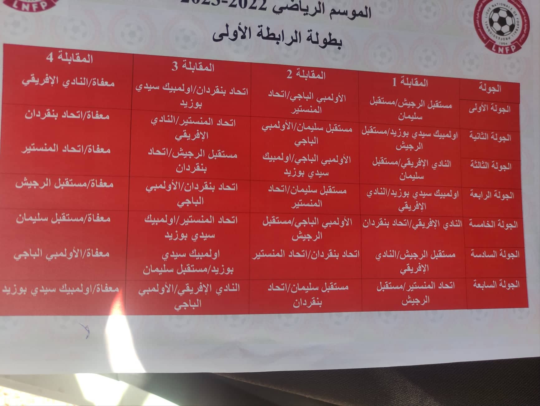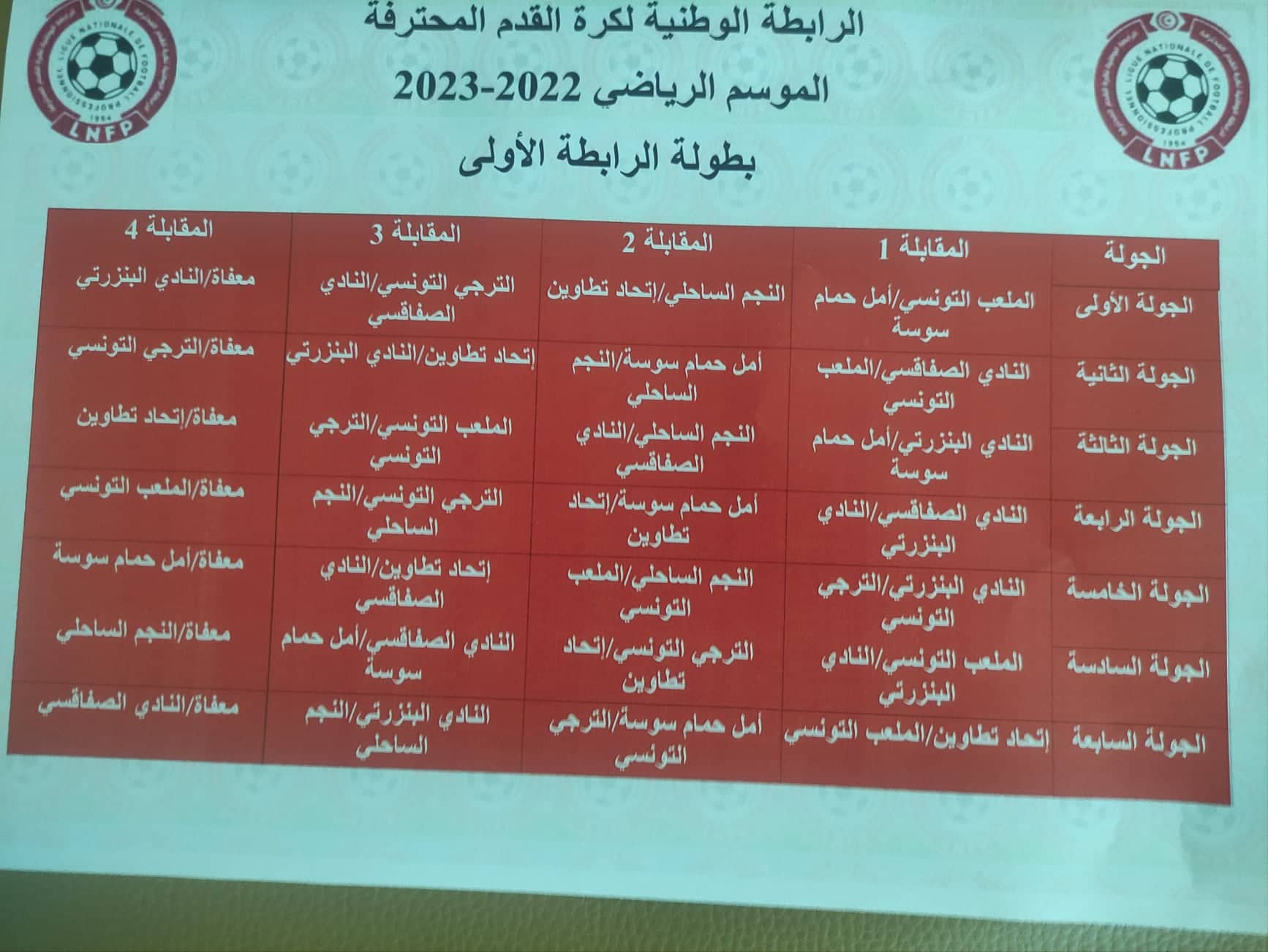 تم منذ قليل سحب برنامج الموسم الكروي الجديد 2022 لبطولة الرابطة المحترفة الأولى لكرة القدم والتي أسفرت عن المواجهات التالية :