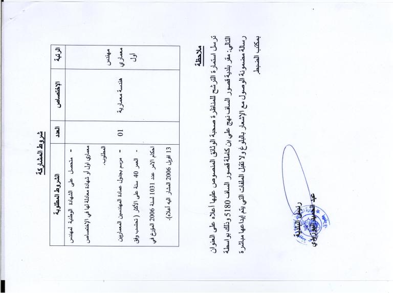 تعتزم بلدية قصور الساف فتح مناظرة خارجية بالاختبارات لإنتداب: